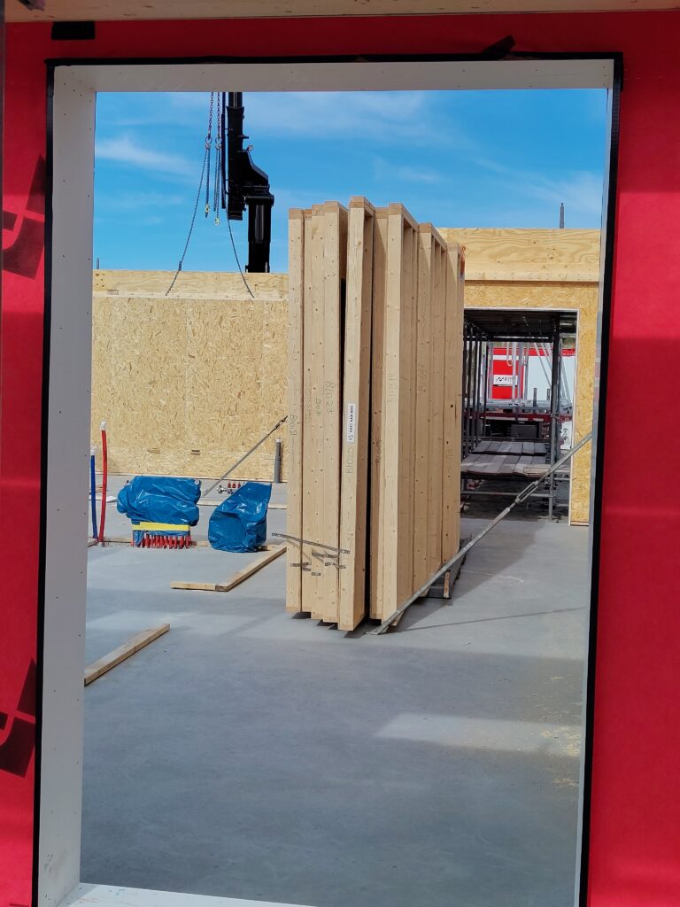 Voor onze praktijk kozen we voor een prefab bouwmethode. Rijk Prefab heeft ongeveer 2 weken nodig om alle elementen voor het gebouw te produceren. Een deel staat al ingepakt en klaar voor vervoer.