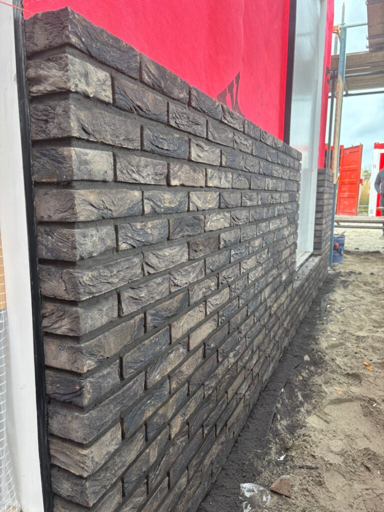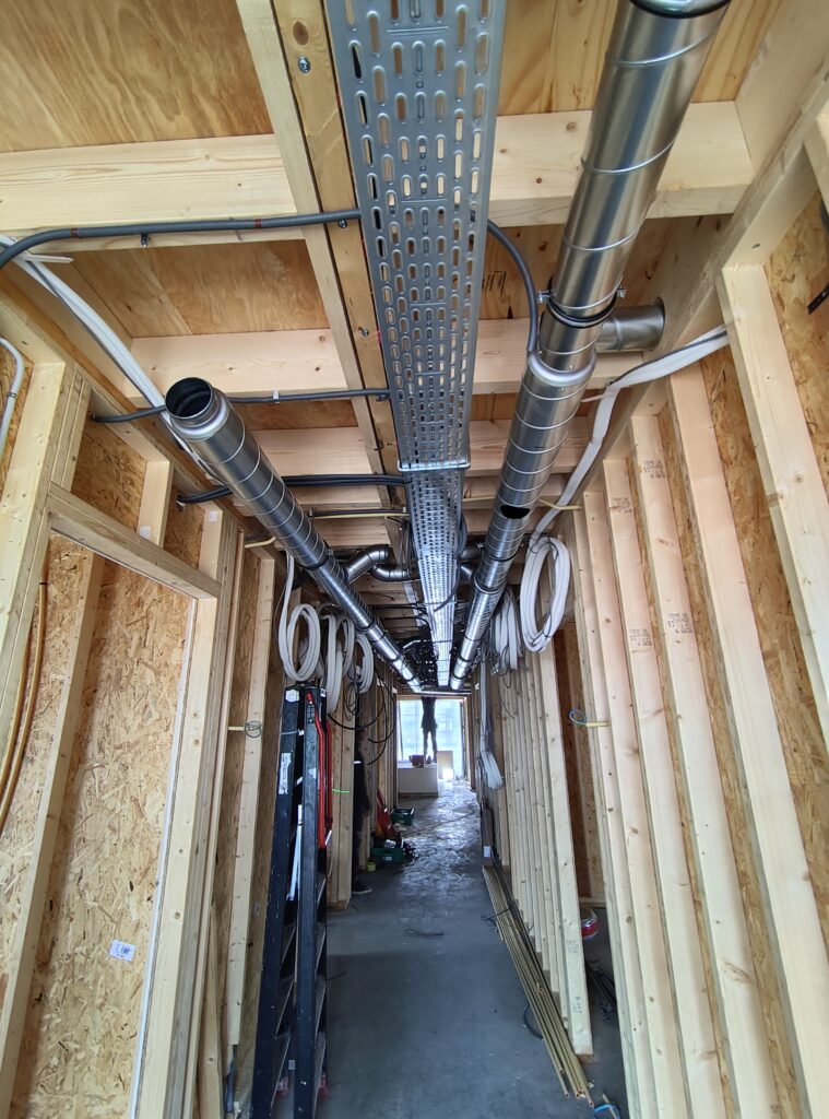 Het metselen is begonnen en in het pand worden heel veel buizen en leidingen geplaatst.